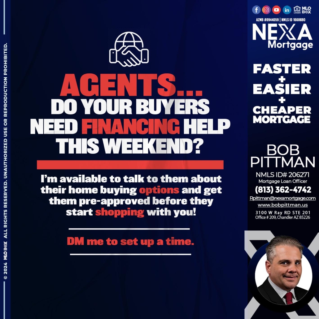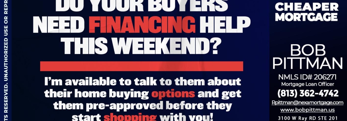 Hi, my name is Bob Pittman. I’m a Loan Officer with NEXA Mortgage LLC., offering personalized mortgage solutions, fast customized quotes, great rates and service with integrity.