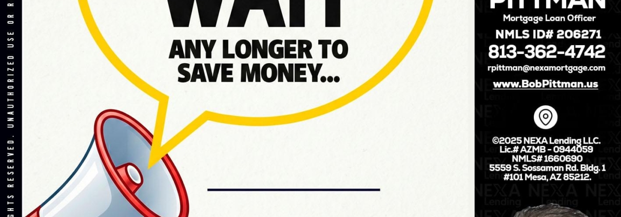 Hi, my name is Bob Pittman. I’m a Loan Officer with NEXA Lending LLC., offering personalized mortgage solutions, fast customized quotes, great rates and service with integrity.