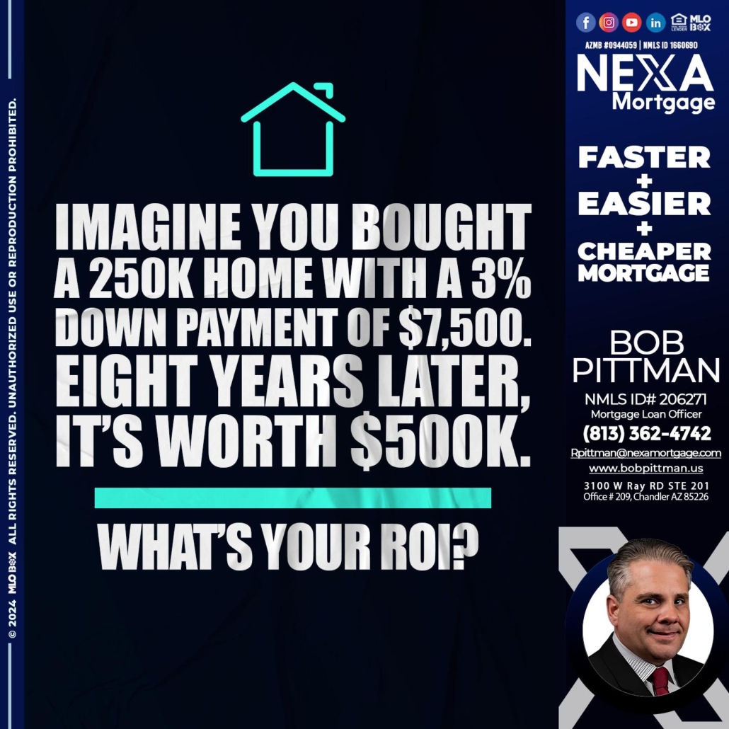 Hi, my name is Bob Pittman. I’m a Loan Officer with NEXA Mortgage LLC., offering personalized mortgage solutions, fast customized quotes, great rates and service with integrity.