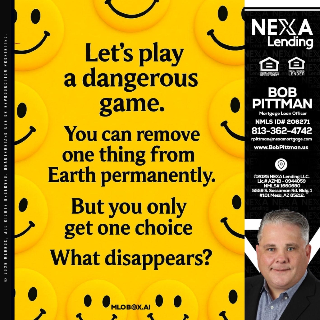 LETS PLAY - Bob Pittman -Mortgage Loan OfficerHi, my name is Bob Pittman. I’m a Loan Officer with NEXA Lending LLC., offering personalized mortgage solutions, fast customized quotes, great rates and service with integrity.