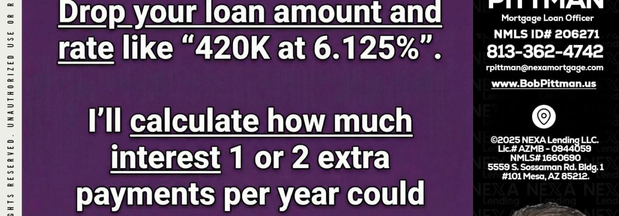 Hi, my name is Bob Pittman. I’m a Loan Officer with NEXA Lending LLC., offering personalized mortgage solutions, fast customized quotes, great rates and service with integrity.