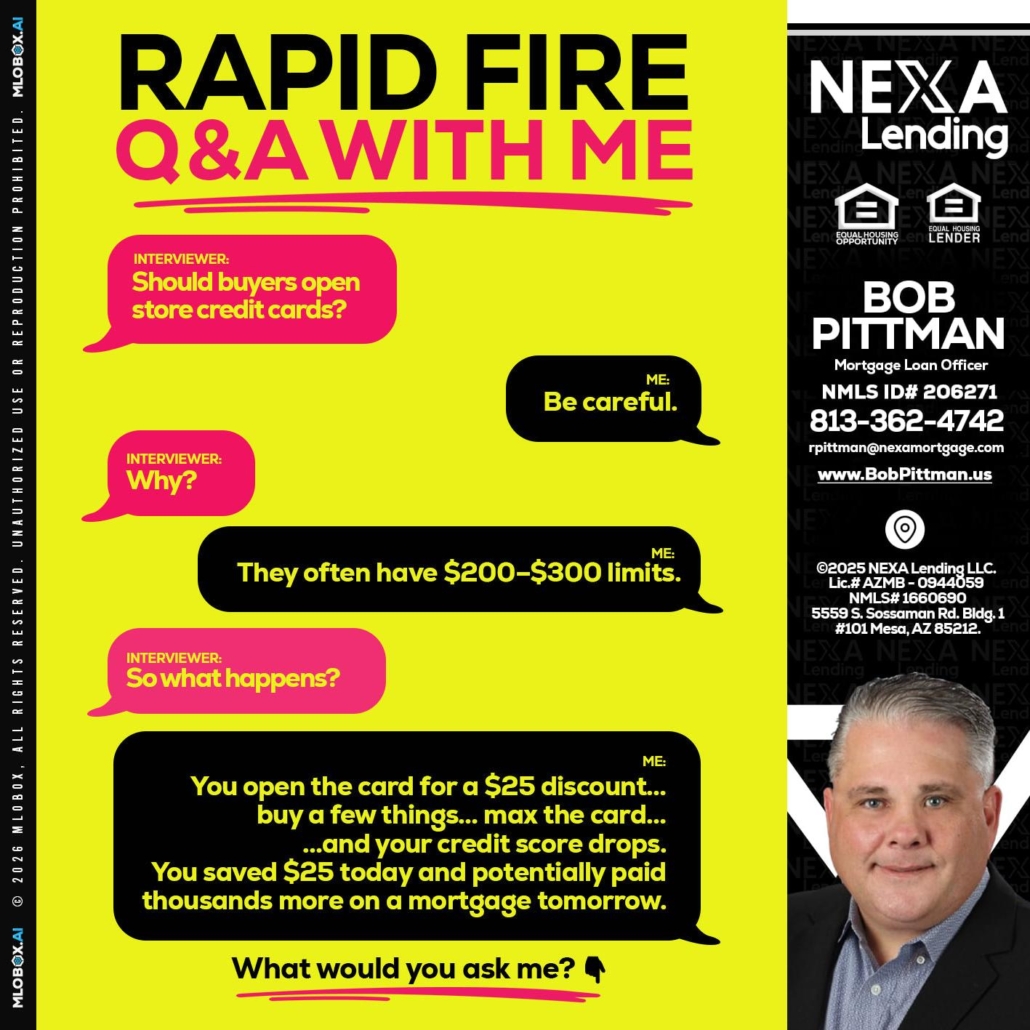 Hi, my name is Bob Pittman. I’m a Loan Officer with NEXA Lending LLC., offering personalized mortgage solutions, fast customized quotes, great rates and service with integrity.