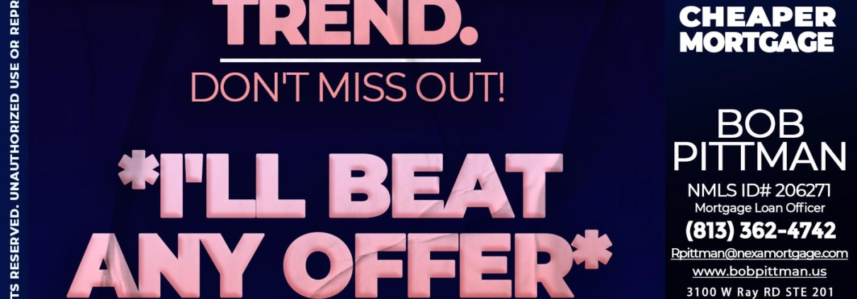 RATES - Bob Pittman -Mortgage Loan OfficerHi, my name is Bob Pittman. I’m a Loan Officer with NEXA Mortgage LLC., offering personalized mortgage solutions, fast customized quotes, great rates and service with integrity.