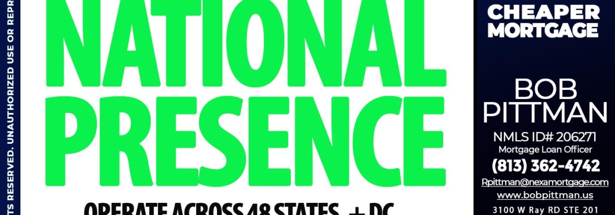 Hi, my name is Bob Pittman. I’m a Loan Officer with NEXA Mortgage LLC., offering personalized mortgage solutions, fast customized quotes, great rates and service with integrity.