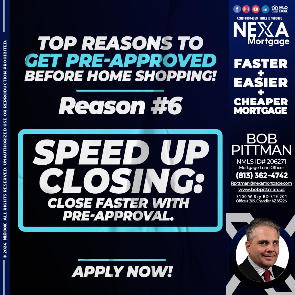 Hi, my name is Bob Pittman. I’m a Loan Officer with NEXA Mortgage LLC., offering personalized mortgage solutions, fast customized quotes, great rates and service with integrity.