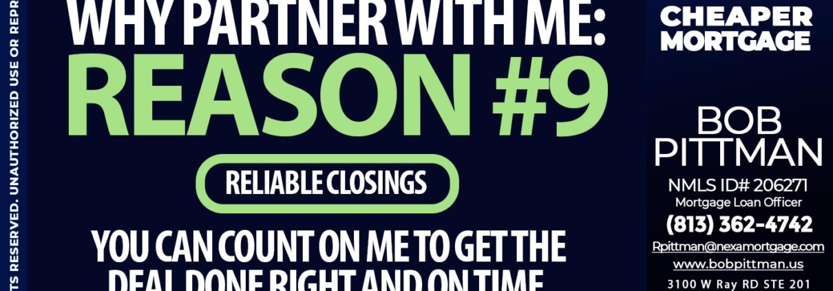 REASON 9 - Bob Pittman -Mortgage Loan OfficerHi, my name is Bob Pittman. I’m a Loan Officer with NEXA Mortgage LLC., offering personalized mortgage solutions, fast customized quotes, great rates and service with integrity.