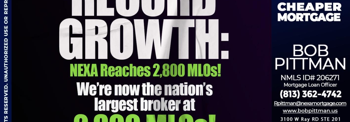 Hi, my name is Bob Pittman. I’m a Loan Officer with NEXA Mortgage LLC., offering personalized mortgage solutions, fast customized quotes, great rates and service with integrity.