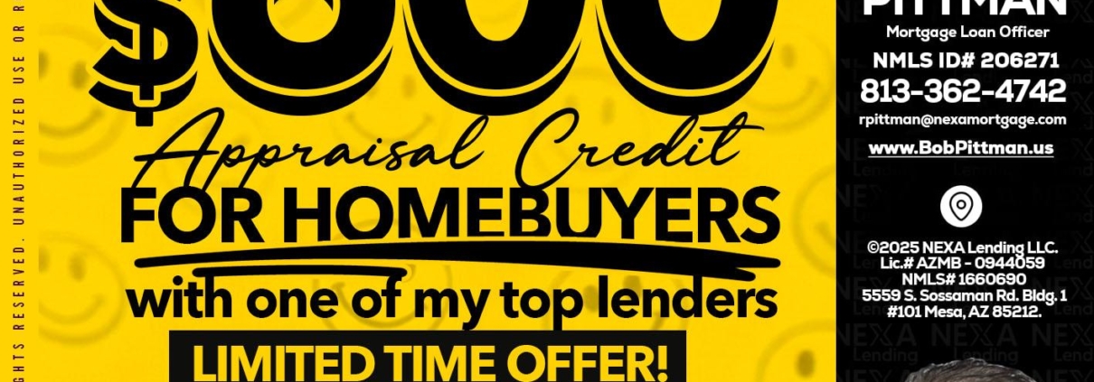 UP TO 600 - Bob Pittman -Mortgage Loan OfficerHi, my name is Bob Pittman. I’m a Loan Officer with NEXA Lending LLC., offering personalized mortgage solutions, fast customized quotes, great rates and service with integrity.