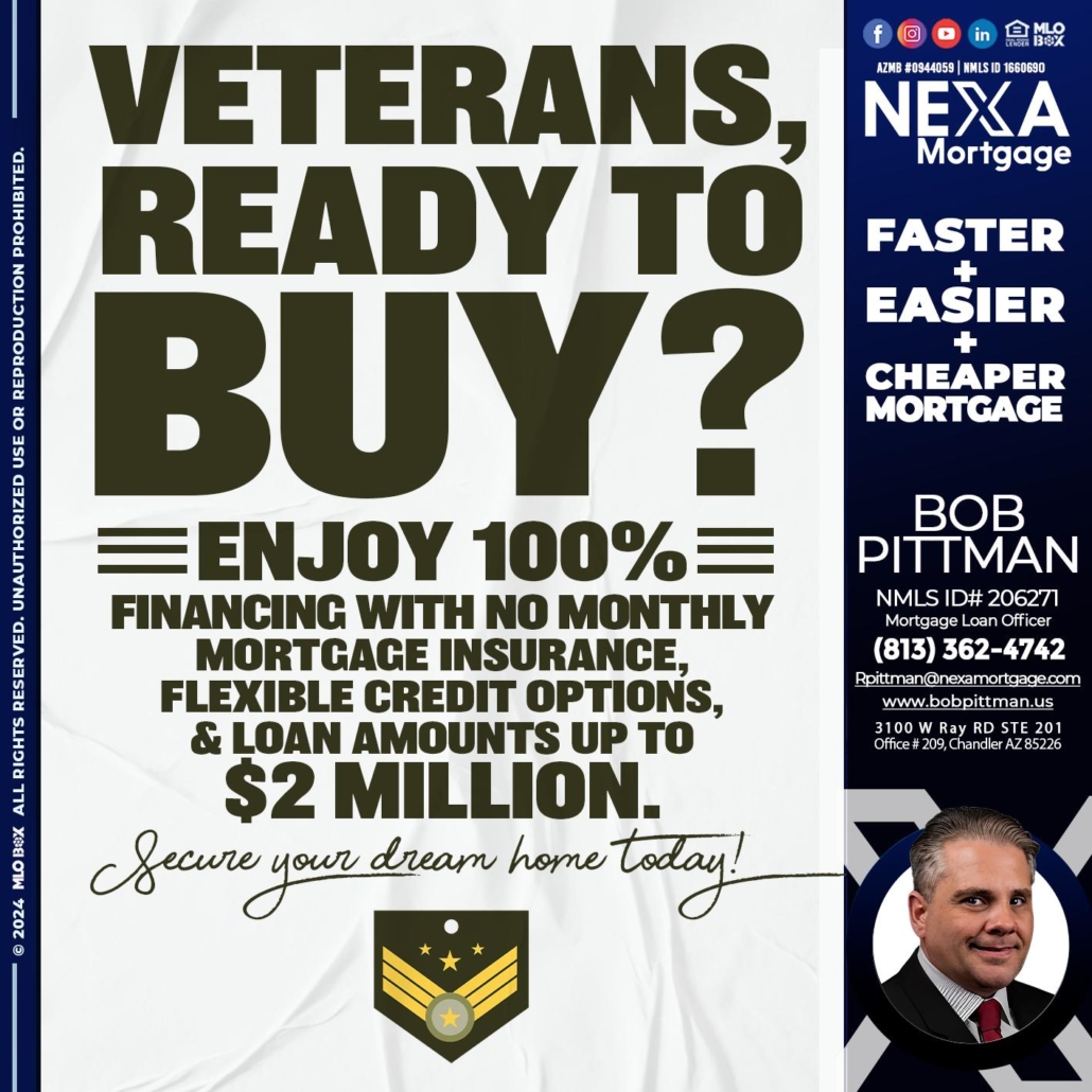 Hi, my name is Bob Pittman. I’m a Loan Officer with NEXA Mortgage LLC., offering personalized mortgage solutions, fast customized quotes, great rates and service with integrity.