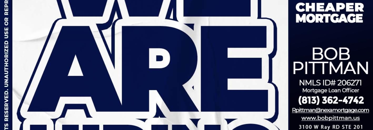 Hi, my name is Bob Pittman. I’m a Loan Officer with NEXA Mortgage LLC., offering personalized mortgage solutions, fast customized quotes, great rates and service with integrity.